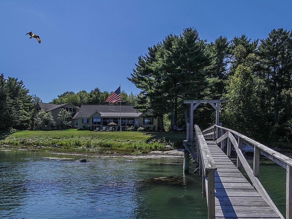 Elegant waterfront home on stunning Meadow Cove! One-floor living with the utmost attention to luxury and detail. Chef's kitchen, en-suite master bedroom with gas fireplace and views of the cove from every room. Spacious guest apartment over the expansive garage that will hold several cars and your rv or boat! Large screened porch, dock and mooring, and generator.