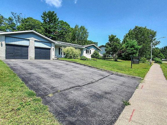 A quiet and much desired neighborhood with 3+1 bdrms, 3 bath bungalow on massive 1/2 acre lot backing onto a beautiful wooded, greenbelt ravine. This Bungalow boasts brand new windows on main floor, a brand new furnace & AC and newer kitchen appliances plus back deck newly finished in composite. Oversized double garage, 3 large bedrooms with ensuite bath off master. The lower level is 2/3rds finished including a huge 33 ft. by 15 ft. recreation room, 4th bedroom, 3piece bath; additional rooms used for utilities, laundry and storage. Potential for in-law suite in basement. Beautifully landscaped with large front porch; spacious yard; deck; garden shed, Minutes to walking trails, Sportsplex & theatre; in Monck P.S. area. Flexible closing date.
