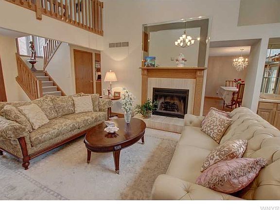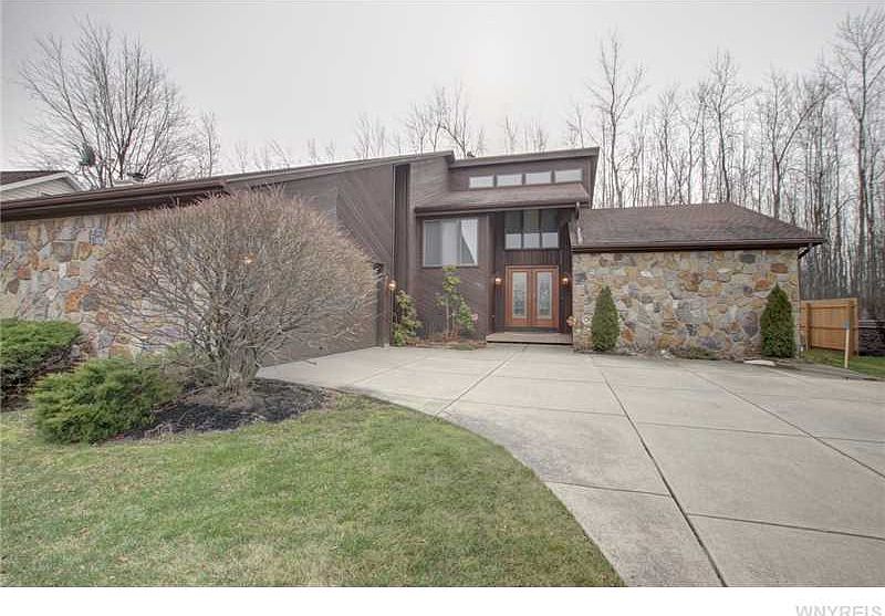 Spectacular, updated Contemporary in immaculate condition. Dramatic foyer overlooks striking Great Room w/vaulted ceiling, wood burning fireplace, wet bar. Eat-in Kitchen has granite counter, stone backsplash, oak cabinets, stainless appliances, pantry. Lovely Dining Rm. Beautiful 3-Season Room views rear yard backing to woods. Two generous first floor bedrooms w/California closets. Second floor features versatile loft & Master Bedroom w/cathedral ceiling, two California closets, ceramic glamour bath. Most of home features engineered hardwood floors, porcelain tile, Hunter Douglas blinds.