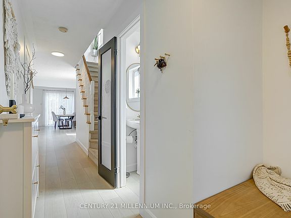 The total Package & right out of a designer home magazine. Set on a quiet child friendly court, private backyard backing onto pond & greenspace! XL driveway fits 3-4 cars + garage w/ no sidewalk. This semi 3 bed 3 bath has undergone a gorgeous renovation top to bottom. White oak wide plant flooring on main, custom & detailed wall molding, trim, baseboards, lighting. Large O/C living room filled w/ sunlight, custom wall molding, large windows flows to the dining & Scandinavian inspired kitchen w/ no expense spared feat quartz counters, undermount Double deep sink, gold sensor touch faucet, HE S/S electronic appliances that w/o to your private backyard. Updated staircase with berber plush carpeting flows t-out 3 bedrooms. King Size master retreat w/ Modern closet door to bright W/I w/ window, custom home office work station, semi ensuite 4pc access, Spa inspired 4pc bath feat white oak floors, herringbone shower tile, gold fixtures, modern vanity w/loads of storage. 2 more uber cute kids bedrooms w/ Double closet door
