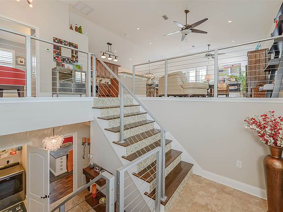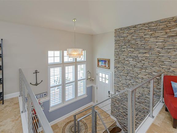 Escape to a tropical paradise in this stunning Key West style pool home . Enter on the second level where youâEUR(tm)ll find a beautiful window lined foyer w/ stacked stone accent wall & sleek cable staircase. Down a few steps finds the guest suite with private bath, laundry room complete with laundry chute & the mater suite as well as ample under staircase storage . This master boasts a large walk in closet with custom built ins &