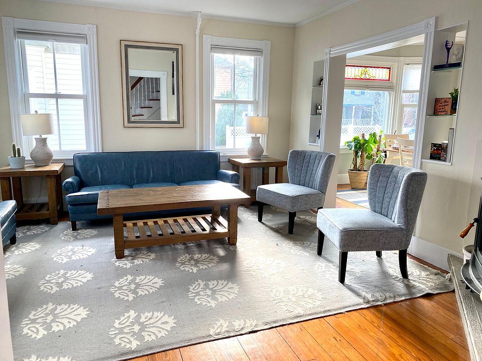 Beautiful home available for June ($6,000) and August ($10,000). This five-bedroom property (sleeps 10) is centrally located between downtown shops and restaurants, Bellevue Ave, the Cliff Walk, and First Beach. The property features an updated kitchen with granite countertops, new bathrooms, bay windows, and hardwood floors throughout. There are four bedrooms on the second floor with a master suite on the third. There is an outdoor shower, two off-street parking spaces, and a fenced-in backyard that is perfect for entertaining. All utilities included. Pets are considered! All utilities are included and pets are negotiable. Rental is available from Memorial through Labor Day Weekend. No smoking.