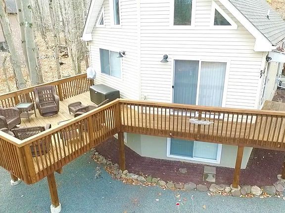 Contemporary Chalet in the gated, amenity-filled community of Arrowhead Lake. This 3 bedroom, 1.5 bath chalet comes complete with many upgrades and updates. The kitchen has new appliances and new faucets. 4 new ceiling fans and ceiling lights have been installed. Home has a new hot water heater, 3 window AC units (in each bedroom) that keep the home cool on hot summer nights. Basement has been upgraded with insulated tile, shelving and a workbench. Outside has triple decking with new front deck steps and a gate. All decks have been washed, sanded and stained and are ready for you to enjoy. Yard has been landscaped with decorative stone. Close to all the amenities Arrowhead Lake has to offer. Arrowhead Lake is a gated community with security, 3 heated pools, 2 lakes for fishing/swimming and boating, tennis courts, clubhouse, new lodge, fitness center and much more. Activities included just to mention a few are bonfires, carnival, zumba, water aerobics, swim team, potluck dinners, all you can eat breakfasts and summer camp.