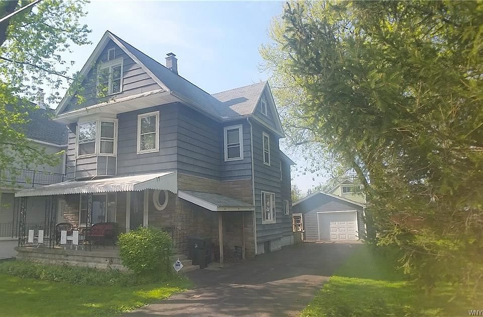 This Beautiful 4 bedroom 1.5 bath almost 1,900sqft 2 story Village of Blasdell/Town of Hamburg home has plenty of room and features a larger double lot! Spacious living room w/fireplace, bright formal dining room, big eat in kitchen leads to your raided 200sqft deck, 1st floor laundry room and half bath, 4 good sized 2nd floor bedrooms w/plenty o storage and a full bathroom, massive 3rd floor 1,000sqft walk up attic storage space, 7ft basement. Newer: roof, electrical, plumbing, furnace and water tank. Lovely covered front porch, 1.5 car detached garage. Seller offers a 12 month HOME WARRANTY on the home w/acceptable offer for even more peace o mind!