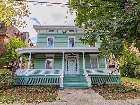 Spacious three bedroom, one and a half bath in the village of Fort Plain on a charming tree-lined street. This home has been immaculately and lovingly cared for over the years and is ready to move right in. There's no end to outdoor living with the beautiful wrap around porch in front and sizeable covered patio out back. From the back door you enter the expansive kitchen with plenty of room for a breakfast table. Pocket doors lead to the formal dining room and two large living areas, all with hardwood floors. Up the beautiful central staircase are three generous, bright and sunny bedrooms, an enormous bathroom and convenient second floor laundry room. The two-car, two-story garage offers space for a workshop, studio, storage or additional entertaining.