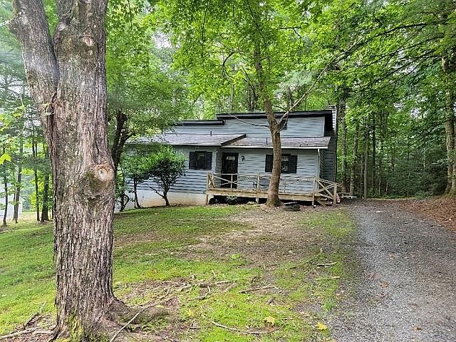 Cozy Cottage tucked away in the Blue Ridge Mountains and located just off the Blue Ridge Parkway in the Roaring Gap community. Home features 2 bedroom 2 bath with cathedral ceilings and stone fireplace in the living area, oak kitchen cabinets and half basement with 1 car garage. Has large back deck, and outbuilding located on a nice and private setting situated on 2 lots with easy access. Within minutes to Stone Mountain State Park and Golf courses.