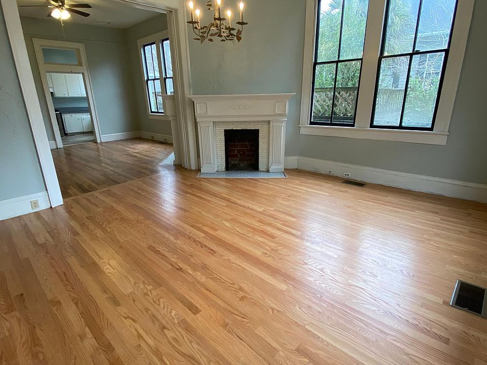 Great space 3 minutes from downtown! Beautiful Chandeliers, and Pocket Doors! Fully Renovated. Includes Refrigerator and Range. Water is Included! Hardwood Floors and Beautiful fireplace in both dining room and living room! Front porch has seating and string lights. Great Midtown Vibes and close to everything! Dogs & Cats are welcomed :) Owner pays water. Renter pays gas and electric. Cats and dogs under 60lbs are allowed. Only two per unit. Security Deposit & First Months Rent due before move in.