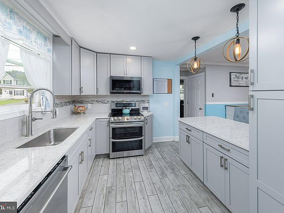 Adorable & Affordable 4-Bedroom Home with Spacious Fenced Yard! This charming 4-bedroom, 1.5-bath home is packed with character and updates—perfect for first-time buyers, growing families, or anyone looking for a great value! With very reasonable taxes ($4,028) and a host of features, this home is a must-see. Step onto the welcoming covered front porch, ideal for relaxing on summer evenings. Inside, you're greeted by a sun-filled living room featuring gleaming hardwood floors that lead you into the heart of the home. The remodeled kitchen is designed for modern living with granite countertops, a tile backsplash, breakfast bar, built-in microwave, stainless steel range, and dishwasher. It opens seamlessly into the spacious dining room, perfect for family meals and entertaining. A convenient powder room and laundry room are located just off the kitchen, with access to the large, fully fenced backyard—complete with a tan vinyl privacy fence, patio area, basketball pad, and a shed for outdoor storage. The main floor also features a large bedroom that could easily serve as a home office or family room. Upstairs, you'll find three roomy bedrooms and a large full bathroom. Need storage? You'll love the walk-up attic and a full unfinished basement with plenty of space to organize and store. Additional highlights: Room to add a driveway on the right side of the home Located near I-295, PA and DE bridges Just 18 minutes to Philadelphia International Airport Schedule your private showing today and make this adorable and affordable home your own!