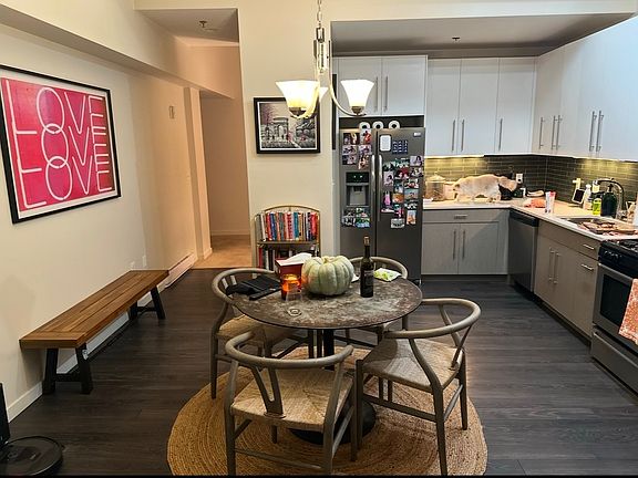 This wonderful, spacious, lofty one bedroom home with a study has a charming private entrance, making it feel more like a single family home. With an open floor plan, 1060 square feet and all the best amenities including in-unit laundry, a stainless and granite chef's kitchen, wood floors, high ceilings, skylight and access to the on-site fitness center, this one might just have it all! Walk out your door and enjoy this welcoming and friendly neighborhood with over 100 fabulous restaurants, cafe's and shopping. Steps to the T and a a short walk to the Financial District makes this the perfect urban home you will simply love! Available Now! The utilities are separately metered and there is a gas bill and an electric bill. The landlord's deposits are first month's rent and security deposit. There is a broker's fee equal to one month's rent and a $25 application fee per tenant. There is no smoking allowed. An on-site fitness center is included in the rent as well as private storage. Available for February or March