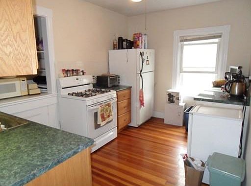 Great location! Walk to shops & restaurants in Coolidge Corner. Wood floors throughout, tiled bath, updated kitchen and bath. Heat & Hot water are included! 1 car tandem parking, washer & dryer for the unit in the basement along with some storage. Bedrooms are all similar size. Cozy deck off the back overlooking tree tops. Please give 24 hr notice to show.