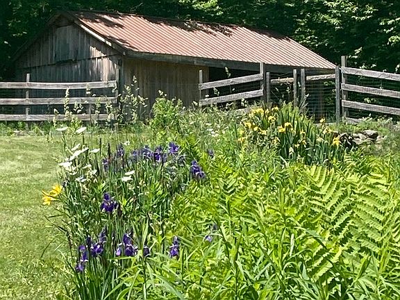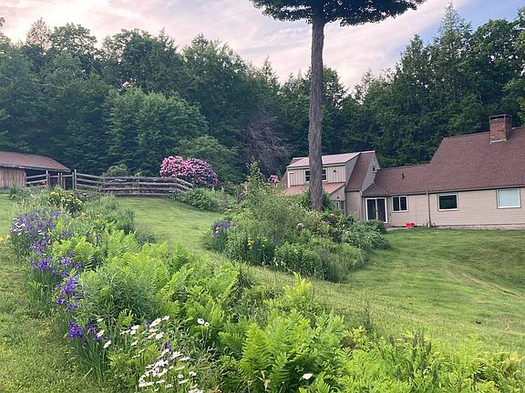 This beautiful home sits back from the road and enjoys total privacy on 18 acres of meadow and woods. Exposed beams, three season sunroom, brick fireplace with Jotul wood stove, separate office space, extensive kitchen with vaulted ceiling and breakfast island, attached two car garage and separate 20x30 barn/equipment shed, Master bedroom has private deck, tiered gardens, brick patio, walk in closets, and TONS of additional storage space. Basement is mostly finished w/ separate utility room. HUGE fenced in yard and meadow beyond containing 35 blueberry bushes. Pine, oak, slate, and tile floors. Three Mitsubishi mini splits for efficient heating and cooling. Great light throughout with large picture windows in the living room. Surrounded by perennials and flowering trees & shrubs. Come take a look. You won’t be disappointed.
