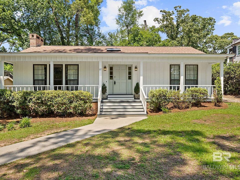 One block from Mobile Bay, this 4BR/3BA single story home in Fairhope's coveted Fruit & Nut area is updated and has a wonderful open design. Large Great Room with a fireplace. Primary Bed & Bath are spacious and opens to deck in the back yard. Enjoy a walk to the bay or to downtown from this perfectly appointed and located home. Buyer to verify all information during due diligence.