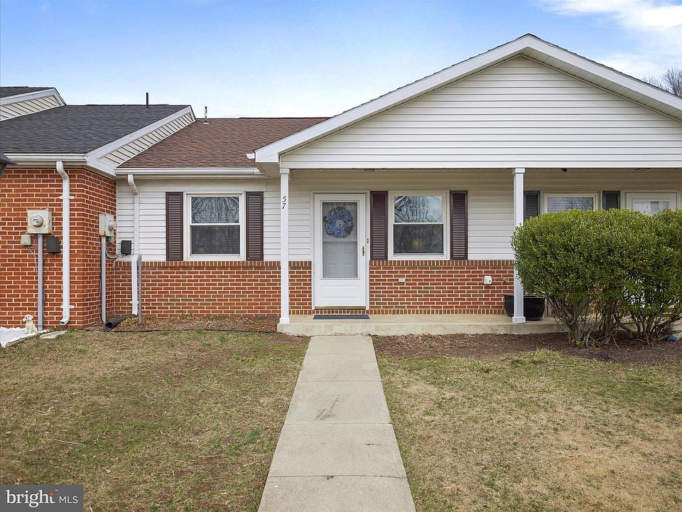 Charming Ranch-Style Townhome with Main-Level Living! This well-maintained 2-bedroom, 1-bathroom townhome offers convenient one-level living in a comfortable and inviting space. Step into the bright living room, featuring carpeting and a window that fills the space with natural light. The front bedroom also includes carpeting and a sunlit window, creating a warm and welcoming feel. The primary bedroom provides direct access to the full bathroom, complete with a tub/shower combination for added convenience. The eat-in kitchen is fully equipped with an electric range, refrigerator, dishwasher, garbage disposal, and a double sink. From here, step out onto the covered rear porch, which includes a storage closet—perfect for extra organization. The rear yard offers a privacy fence, offering a great space for relaxation or outdoor enjoyment. A ceramic-tiled laundry room with washer/dryer hookups adds to the home's practicality. Plus, updated windows enhance energy efficiency and comfort. This delightful home combines functionality and charm—don’t miss the opportunity to make it yours! Square footage and room sizes are estimated.