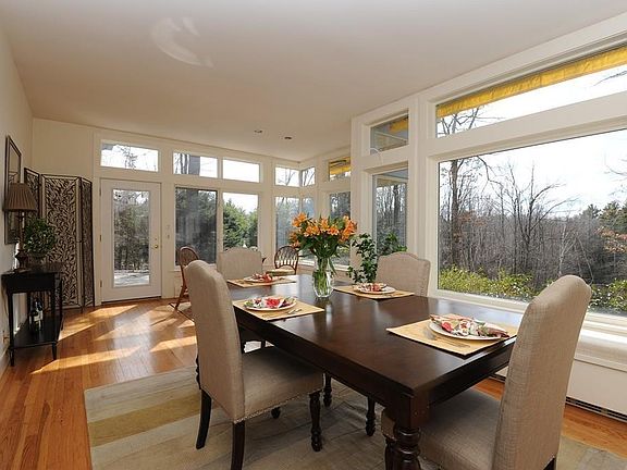 First showing at the Open House, Saturday 12-2. A magical property set on 4 acres with a cabin & your own pond! A secret, private retreat that is totally inconspicuous from the world. First floor Master bedroom with dressing room, luxurious bath & Japanese water garden. The spectacular sunroom & home office with built-in shelving both feature a wall of windows with southern exposure & views of the pond. The living room has a gorgeous stone faced fireplace and a custom meditation area - negotiable with purchase. Family room with fireplace is open to the kitchen, 3 additional bedrooms, walk-out basement & storage over the garage. There's a mud room with work area, perfect for gardening & a 1st floor laundry. Fantastic Goshen stonework & spacious patio. You are surrounded with peace & tranquility, just minutes to all Amherst has to offer. Meander down the path to find an alluring cabin, where your creative juices will flow. This is a once in a lifetime opportunity. Exceptional!