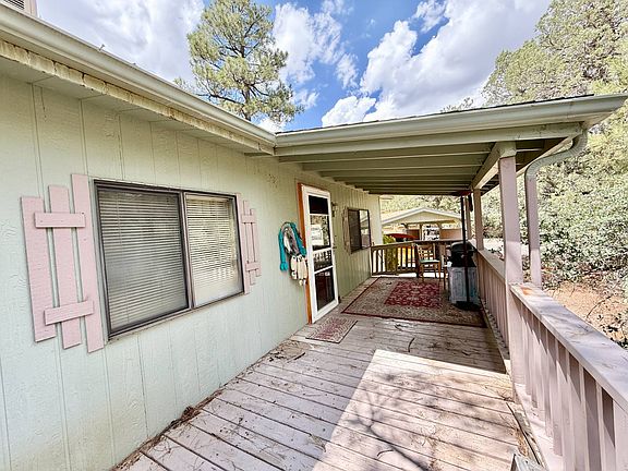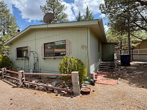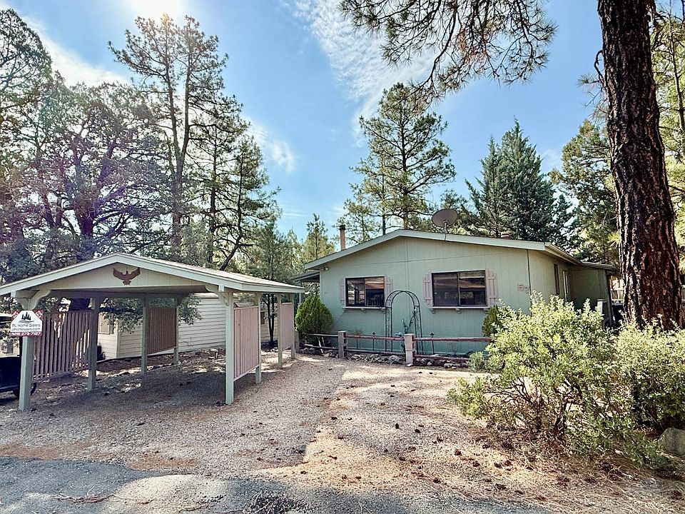Here is your chance to live in the desirable Pine Lakes community at a fraction of the cost of other homes. This 2 bedroom/2 bath 1056sf home with a fireplace, carport and covered deck is ready for your personal touches. Seller is motivated! Living in Pine Lakes 55+ community can offer you a secluded community located among homes averaging $719,440 in the tall pines yet still close to all that Prescott has to offer and only 5 miles from downtown. We are a site lease community which saves you in property taxes! The monthly site lease is $1198.00 per month which includes full use of the amenities of the park, your utilities are additional. Amenities include swimming pool, jacuzzi spa, billiards, tennis court, pickleball, workout room, barbeque, dog park and picnic facilities. The park has two lakes with walking paths around each of them and the community borders the Prescott National Forest which offers miles of hiking and nature trails for all levels and experience.