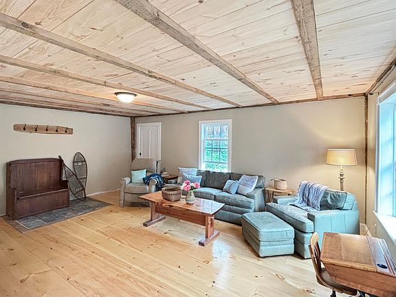 PRICE IMPROVEMENT AND SELLER FUNDED 2/1 RATE BUYDOWN! Your opportunity to step back in time with modern comforts in this stunning historical treasure nestled on a sprawling 6.1-acre country lot just got better! Perfect for history aficionados and hobby farmers alike, this unique home blends 200 years of charm with contemporary updates, offering a living experience steeped in tradition yet convenient for today's lifestyle. Admire the craftsmanship of two classic building methods that come together beautifully—robust timberframe and sturdy log home construction. Inside, the warm embrace of beamed ceilings, gunstock corners, and some preserved original features evoke a sense of nostalgia. This home offers a first-floor primary suite, plus an expansive 600 sq ft family room on the 2nd floor. Cultivate your passions with a HUGE barn, a fenced garden and mature berry bushes and fruit trees dotting the landscape. Embrace the joys of rural living with ample space for projects and relaxation, yet stay connected to community life with a short walk into town, which is celebrating its 250th anniversary. Area recreational opportunities abound including boating, hiking, skiing etc. With the heavy lifting already completed, this home awaits your finishing touches to bring its full potential to life. Be part of a living history while enjoying the tranquility of this quant town—this is more than a home, it's a legacy waiting for its next caretaker.