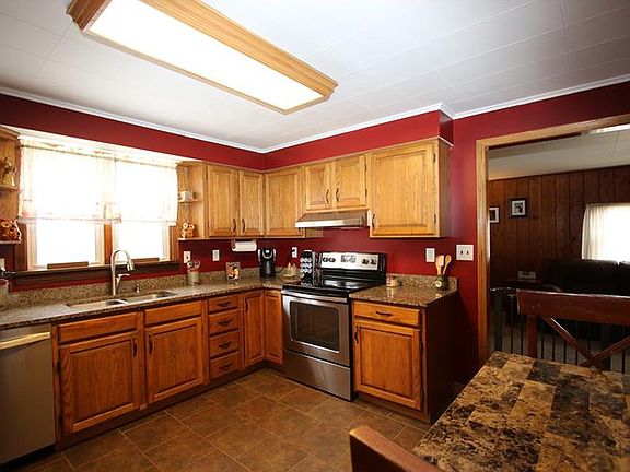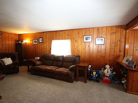 Almost 1 Acre of Mostly Private Property on dead-end Street! Beautiful Updated Eat-in Kitchen w/ Newer Granite Tops, Ceramic Tile Floors & Stainless Steel Appliances (2013) plus Plenty of Oak Wood Cabinets! Newer Carpeting March 2016. Large Living Room w/ Gorgeous Knotty Pine Paneling, Separate 5x11 Entry & Coat Closet! Huge Separate Formal Dining Room w/ Service Window to Kitn & Ceramic Tile Entry from Cov'd Front Porch. MASSIVE 28x23 Game Room w/ extra Cabinets, 2 Deep Closets, 1 Cedar Lined & Door to Private Back Yard. Convenient 3rd Bedroom in Lower Level w/ Private Entrance. Newer Carpeting in Bedroom. Quality Plaster Walls & Traco Windows. Lots of Natural Light Flowing thru-out home. Entire Exterior Painted 2010, Roof, Furnace & A/C 2001, HWT 2013. Oversized Det/Grg offering additional Storage underneath plus outside storage room in back of house. HOME WARRANTY INCLUDED. Great Location just off Route 136, PA 43, minutes to Route 88 & down town. Absolute MOVE-In Condition... CLEAN