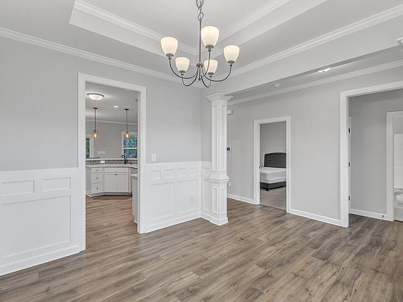 Welcome Home to this Charming Ranch on .79 ac, Low traffic cul-de-sac lot in Carolina Landing! Not too far from Hwy 64/264 if you are a commuter to Raleigh, Rocky Mount or Wilson. Stone accented exterior. Covered front porch. Lovely formal dining room with tray ceiling and custom wainscoting. Living Room accented by built-in shelving and gas log fireplace. Breakfast Bar in addition to Dining area. Bright Open Kitchen. Sleek gray subway-tile backsplash beautifully accents the granite counters and stainless appliances. On-trend Barn Door entry to Laundry. Built-in ''Drop Spot'' beside Pantry. Split bedroom floor plan. Primary suite w/ double tray ceiling, 2 Walk-in closets plus linen closet, dual vanities, soaking tub and separate shower. Upgraded plumbing fixtures. Ceramic tile floors in baths & Laundry. LVP in Kitchen/Dining/Main Hall/Drop Spot area. NO City taxes & Low HOA fees. Screen porch and grilling deck overlooking backyard. Drainage easement on right side of property. Outdoor wooden play equipment does not convey.