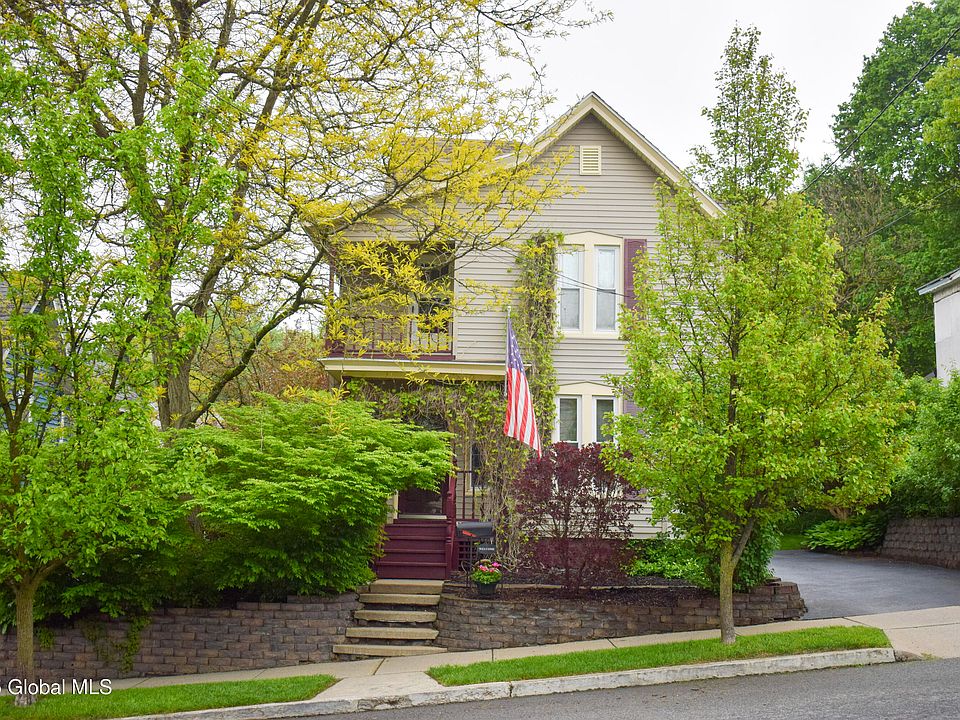 This spacious and beautifully maintained home was once a duplex, now converted into a single-family residence with the potential to easily convert back. Featuring 2 beds, 1 fully handicapped-accessible bath, kitchen, living room, office, and laundry on the main floor, plus 2 beds, 1 bath, kitchen, living room, and walk-in closet upstairs. Dual entries to covered porches (4) on both levels, two stairways to the basement, and walk-up attic access. Mini splits, solar panels, newer appliances, fresh paint and carpet, updated baths, and hardwood underfoot. Stone wall, driveway, and siding are all in excellent shape. Solid Core Pool with newer liner, Trex deck, and well-kept landscaping. Utilities are currently combined. A truly move-in ready home with versatility and charm!