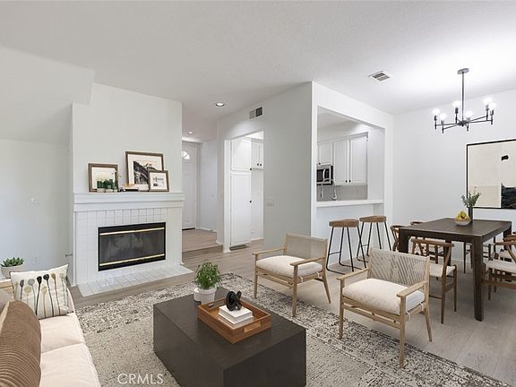 Tucked away in the amenity-rich community of Serabrisa, this 2 bedroom, 2.5 bathroom home, with no one living above or below, a garage and an assigned parking space, has been tastefully updated throughout. The light and bright first floor boasts beautiful new wide plank flooring, fresh paint, designer light fixtures and cozy fireplace. The kitchen has freshly painted cabinets, new stainless-steel appliances and new cabinet hardware. The dining space is ideally located next to the kitchen, fashionably framed by a new statement chandelier. The main floor powder room has been refreshed with new vanity, quartz countertop and modern finishes. Upstairs, the primary retreat is spacious and airy. The attached primary bath en-suite has dual sink vanity, new fixtures and flooring. The second bedroom is well-sized with built-in features for storage. The second full bath has been updated with new vanity, countertop, flooring and hardware. Enjoy the private, low maintenance patio and one-car garage plus an assigned space #166. The serene community of Serabrisa features resort-style pool and lush landscape throughout. Additionally, as a homeowner in Rancho Santa Margarita, you will have access to RSM lake, beach club, multiple sport courts, sparkling pools and spas, clubhouses, BBQ and picnic areas, parks and playgrounds. Conveniently located near fine dining, shopping, hiking and biking trails, Tijeras Creek Golf Course, the toll roads and within a top-rated school district.
