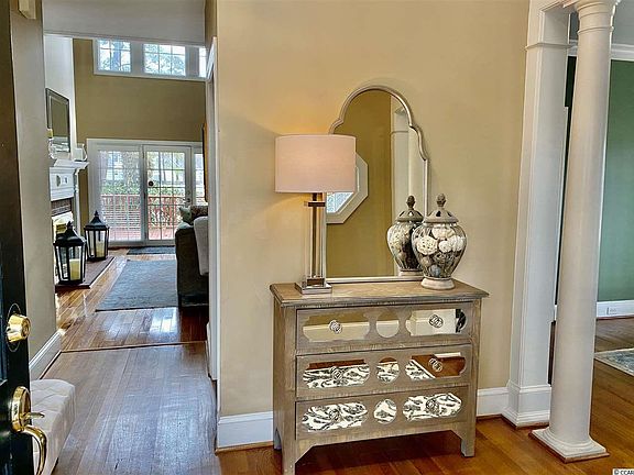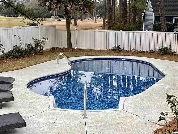 57 Patriot Court is a custom home nestled on the back of quiet cul-de-sac in Wedgefield Plantation. Upon entry, there are cathedral ceilings in foyer and great room. The oversized master suite is downstairs and has beautiful natural light flowing through from the adjoining sunroom. The master bath has a large garden tub and double vanities. The master closet is spacious with double bars and compartments for shoes. The sunroom overlooks the inground pool, patio, deck, and fenced backyard. The great room has a gas fireplace and custom built-ins. This homes provides multiple closets and storage areas. The kitchen has a new gas range, refrigerator, and solid surface countertops. The formal dining is charming with room for a large table. There is a designated laundry room that leads to the garage. There is a 2 car garage with shelving. The upstairs has two bedrooms with double closets in each and a full bathroom. This home is cozy and is perfect for entertaining.
