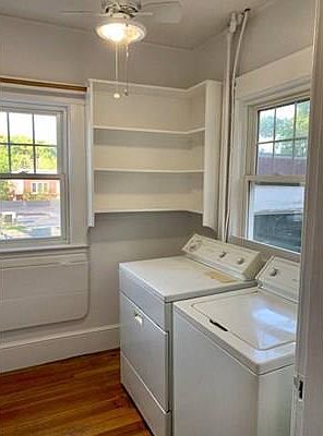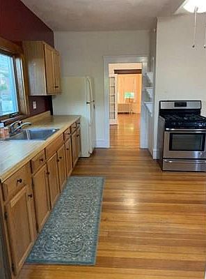 Large 2-bed/1-bath apartment in Arlington with over 1,400 square feet of living area. All rooms freshly painted throughout. New fixtures in every room. Two bedrooms plus office area. Eat-in kitchen with pantry area and gas stove. Living room with gleaming hardwood floors. Dining room with built-in hutch. Washer/dryer in-unit. Off-street parking for two (2) cars tandem. Front farmers porch and private back porch. Ample storage throughout and in-basement. Walking distance to bike path, Trader Joe's, public transportation, restaurants and Main street. No pets please. Available 9/7. First, security and brokers.
