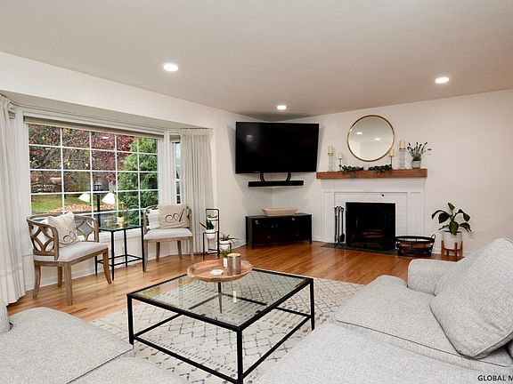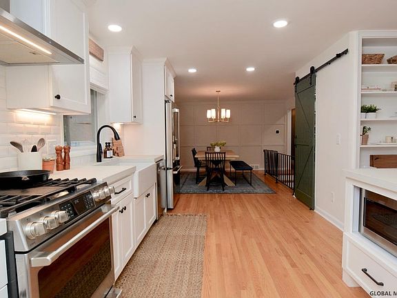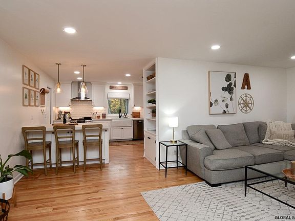 ALL OFFERS MUST BE SUBMITTED BY 4:00 Sun 11/1 per seller. Pottery Barn inspired ranch with modern farmhouse flair. 3 BR, 2 bath home in award winning Bethlehem SD. Sellers remodeled the kitchen creating an open concept to the LR and FDR. Fridge has built-in coffee maker, pantry w/ barn door. Master bath remodeled Oct 2020. HW flrs, wood burning fp, front and back yard sprinkler system. Finished bsmt w/ bar area, lots of natural light and plenty of storage adds an extra 1,500 sq ft of living space. Screened 3 season room off of the FDR overlooks a level, half acre private lot. 2 car garage, outbuilding (sellers hosted their wedding reception in the backyard!), shed, and lush perennial gardens. New roof Oct 2020. New H2O heater. App controlled thermostat and lights.