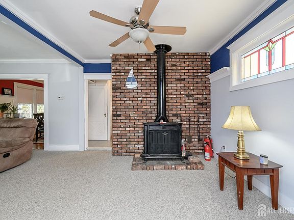 Home Sweet Home! Lovely 2 Bed 1.5 Bath Colonial with Bonus Den, Partial Finished Basement, and Detached 1 Car Garage in highly desirable Metuchen could be the one for you! A perfect blend of classic charm with modern amenities, well maintained with curb appeal, just pack your bags and move right in! Light and bright foyer entry with french doors give way to a spacious living room with decorative molding and cozy wood burning stove, great for the chilly season! Elegant formal dining room with hardwood flooring and decorative molding makes dinner parties a breeze. Plenty of natural light all through! Updated Eat-in-Kitchen offers sleek SS appliances, gorgeous granite counters, ample cabinet storage, recessed lighting, sun soaked dinette space, and access to the rear deck for easy al fresco dining. Cozy den and main full bath with accessible stall shower rounds out the main level of this gem. Upstairs, two generous bedrooms and a convenient 1/2 bath. The primary bedroom boasts raised ceilings and built-in shelving. Partial finished basement adds to the package, offering a versatile rec room and bonus room, great for a 3rd bedroom, home office, hobby room, etc! Laundry, storage, and utilities too. Plush backyard with deck detached 1 car garage is fenced-in for your privacy and comfort. All in a prime location, great for the first time buyer or commuter, just steps the the Metuchen Train Station, the bustling downtown, shopping dining, the bus line, major roads and more!