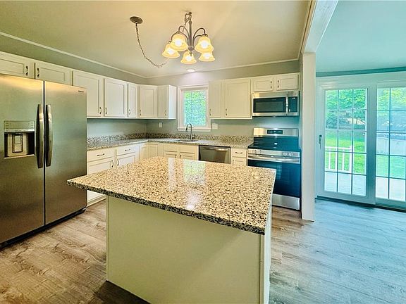 This beautifully updated 3-bedroom home is nestled on nearly 3/4 acre on a quaint neighborhood cul-de-sac in the heart of East Lyme, a picturesque place for evening strolls & peaceful mornings on the front porch. Inside, the large living room featuring a sunny picture window, leads to the family room complete with a whitewashed fireplace & a bay window, offering a cozy spot to unwind. The remodeled kitchen is the ideal place to gather, with a spacious island, crisp white cabinets, gleaming granite counters, stainless-steel appliances & even an inviting breakfast nook. The adjacent slider opens to the freshly painted back deck overlooking the expansive, lush, green lawn & above-ground pool, perfect for both relaxing & entertaining. 2 full bathrooms-1 with a spa-like shower, the other with a new tub-have been tastefully redone, including new stylish vanities. New luxury vinyl flooring, beautifully refinished hardwood floors & new lighting boast modern charm throughout. This home truly has it all & offers peace of mind with many updates: fresh paint throughout, a new front door, recent electrical updates & generator hookup, septic recently pumped, 2015 roof, 2008 Buderus boiler & oil tank, March 2025 termite treatment (NO live insects or damage were found) & 2020 the garage floor was replaced & garage rear foundation wall professionally repaired per a structural engineer's recommendations. This is more than just a house-it's a home to live, grow & make memories for a lifetime.