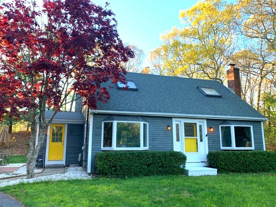 Welcome home to this private oasis! Turn the bend into this sprawling, retreat like, property, 3/4 acre lot.This freshly painted Cape offers a plush woodland surround, patio for entertaining, and custom built (wired for electricity) shed with french doors, perfect for outdoor living. This home offers an updated kitchen with granite counter tops, energy efficient stainless steel appliances, walk in pantry, jetted tub in bathroom, skylights in 2nd floor bedrooms and more!. The heart of the family room boasts a beautiful, crisp white brick(working) fireplace,ceiling fan, and hardwood flooring. 3rd bedroom on 1st level can also be used as an office, den, playroom, library or more. Recent updates include fresh paint inside and out, kitchen updates in 2016, new septic in 2014 Basement has plenty of storage and opportunity. 1st showings @ OH on Sat:10-12,Sun:11-1 with COVID precautions. By Appt. only. 2 people allowed in at a time with 1 agent. Masks, Gloves, COVID form signed.