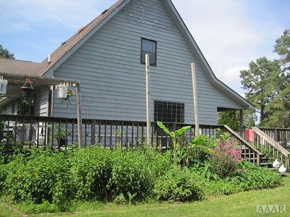 Horses permitted, gardening, pond and peacefulness are just a few of the wonderful attributes of this property.Lovely home with 2 bedrooms and bath upstairs; master bedroom, master bathroom, living room, kitchen/dining room and laundry room on first floor.Enjoy this comfortable home with porches and decks all around the home.Just walk out the master bedroom onto deck and hear the birds sing (purple martin houses) or walk out the front door and sit on the porch and enjoy the view of the pond and some of the gardens.There are several fenced areas for horses (animals).Only 45 mins. to Outer Banks