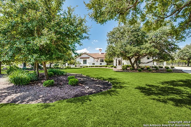 Gorgeous 1-story custom home on 1.19 acres in gated Stone Creek Ranch! Private courtyard w/fountain leads to bright open concept room, travertine floors & granite counters throughout, stone FP & gourmet chef's kitchen w/8-burner gas stove, double ovens, stainless appls, breakfast bar, 2 large pantries & separate catering prep area. Gorgeous master suite w/FP, 2nd living/media area, 3 car garage, covered patio w/kitchen, & large private backyard. Neighborhood pool/lazy river & clubhouse. Boerne schools!