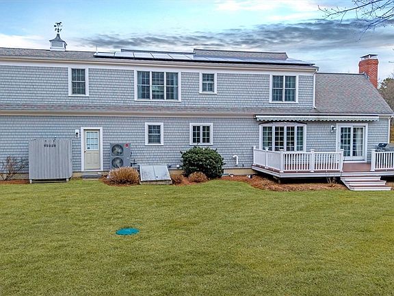 Welcome to this stunning Bayside built home located in the sought-after Sconset Village neighborhood on Cape Cod. This charming Cape-style home is located less than a mile from Mashpee Commons and The Quashnet Valley Country Club, offering a blend of convenience and luxury. Inside, the home boasts remarkable craftsmanship with an open floor plan on the main level, perfect for hosting gatherings. The eat-in kitchen seamlessly flows into a spacious family room highlighted by Cathedral ceilings and a newly installed temperature-controlled gas fireplace. Upstairs, the primary bedroom serves as a serene retreat, complete with a sitting area, walk-in closet, and a modern en-suite bathroom. Step outside to the oversized deck and enjoy the breathtaking views of a meticulously landscaped yard that abuts conservation land. The full basement offers potential for additional living space, while a newly upgraded heat exchange system, installed in 2024 ensures comfort year-round.