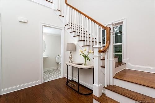 Stunning luxury living in Southport Village. This better than new condominum with over 3000 sf of living space reveals meticulous attention to details, custom cabinetry, beautiful hardwood floors and a flexible floor plan. A two story front foyer welcomes you into the sunlit living spaces. The exquisite chef's kitchen with center island opens to the dining and living room with a gas burning fireplace. French doors to a private terrace and side lawn expand on the living space of this village home. There is an additional office/guest bedroom/playroom (or what have you with a full bath off the kitchen. The ceiling height of 9' offers a gracious feel to the entire first level. Upstairs the primary bedroom suite with large walk-in closet is beautifully appointed. Two other bedrooms and laundry on the second level and a bonus room on the third level offer superb and spacious living spaces. Built with the highest standards and with a two car attached garage, this home is a commuter's dream. Steps to the village center, harbor, fine restaurants, train, beach, Pequot library and other Southport amenities. Truly a Southport gem Also on the market for sale, MLS 170502114.