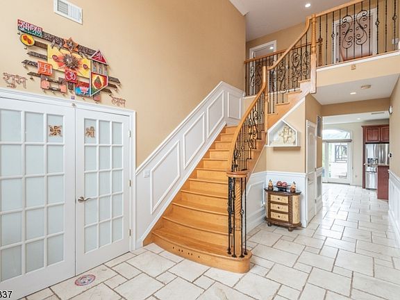 Located in the most desirable street in Clifton, Montclair Heights section; this custom colonial has one of the best properties with spectacular views. Rebuilt in 2009 as builder's own home. 1st floor offers grand 2 story entrance, formal living room, formal dining room, office/bonus room, extra large family room, and beautiful gourmet kitchen with an island and sliders to deck overlooking a private yard. Second floor offers large master suite with sitting room, WIC and a bath. 3 more large bedrooms on 2nd floor, full bath and laundry room. Finished walkout basement with rec room, movie theatre and half bath. Hardwood floors, tray ceilings, crown moldings throughout. 13 miles, 17 mins drive from NYC. Minutes from Rt 3, 46, GSP, MSU, NYC buses/trains, shopping, Montclair downtown and more. Low taxes.