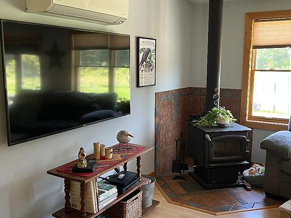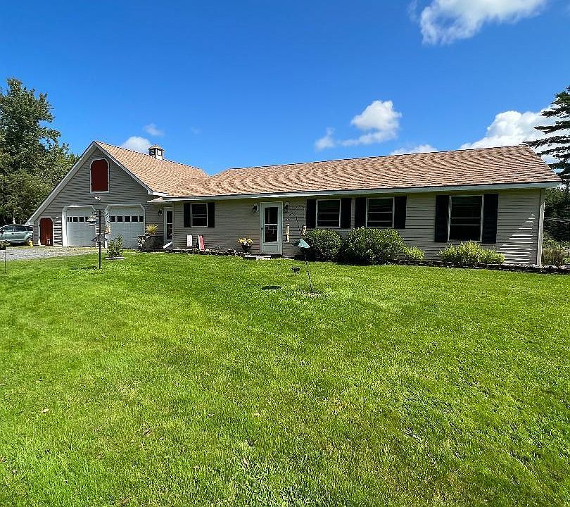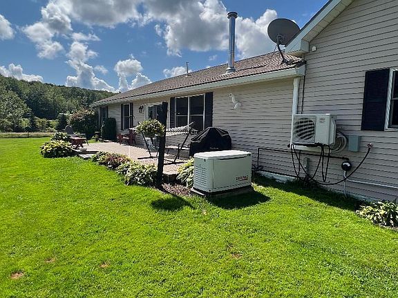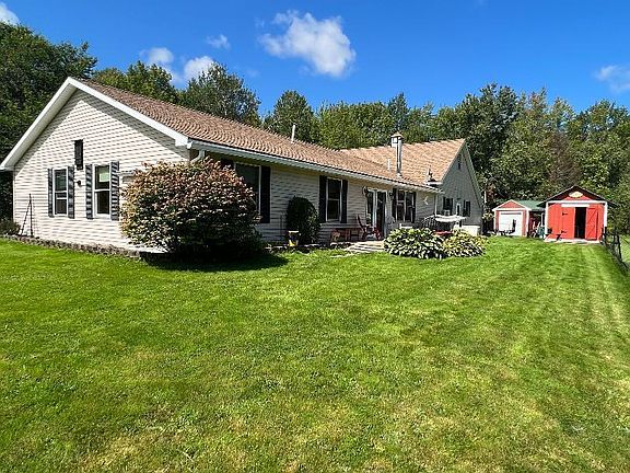 Well maintained home located on a private 5 acre corner lot in Palermo. Offers 50 feet of frontage on a shallow stream fed pond with amazing wildlife. Spacious three bedroom, two bath ranch on a slab with radiant heat, heat pump and woodstove. Two car garage with overhead storage and separate workshop. Breezeway with laundry/utility room. Laminate and tile floors throughout. Garage floor is heated as well. High efficiency propane furnace new in March of 2023. Outside is a one car garage and a finished hobby shed. On demand generator. Won't last long!