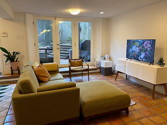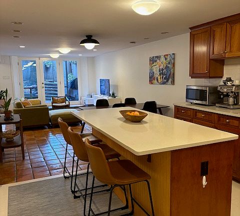 Wonderful two-bedroom, one-bathroom duplex home (two levels) with all the bells and whistles, parking included. This amazing two-level duplex has an exceptional cook's kitchen, a bright living/dining room with built-in bookshelves, and a tremendous private patio that leads to the private parking space. The main bedroom can hold king-sized furniture and has exceptional closet space. The tree-lined second bedroom can accommodate king-size furniture as well and is a great "bonus room" that houses a built-in home office. Washer/dryer in unit, and full parking space.