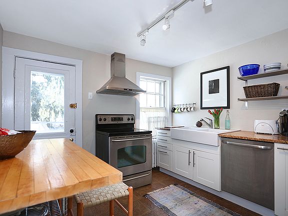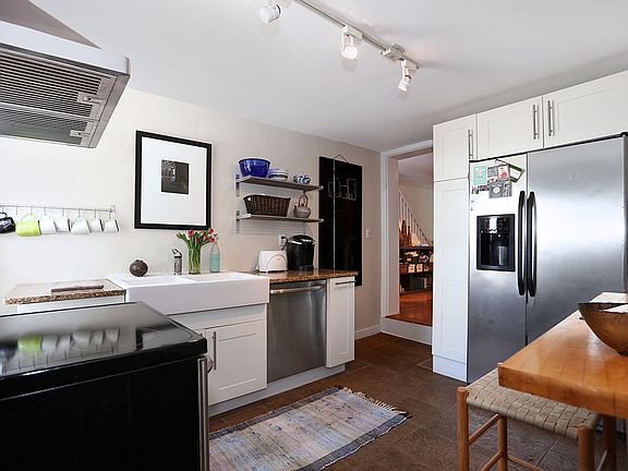 Beautiful historic & spacious home in the heart of Lambertville within walking distance to everything! Freshly painted! An unusually large vintage home with original random width pumpkin pine flooring. A sweet covered front porch welcomes one to the home. Enter into the original hallway with oak flooring, adjacent is the ample living room having random width pumpkin pine flooring, large deep set windows, built-in shelving and a large opening into the generous formal dining room with the continued period pine flooring, a vintage mantle is the focal point & two closets with antique paneled doors adding charm and character. A recent remodeled kitchen with new cabinetry, double porcelain white farm sink, granite counters, & stainless appliances with a new stainless hood above the stove and the entrance leading out onto the large painted deck and attractive yard is a great place to dine al-fresco or entertain. The second level includes two sizable bedrooms with ample closet space and built-in shelving, lots of windows for plenty of light, orig. pine floors throughout, a big hallway linen closet and updated full bath complete the 2nd level. The top floor & 3rd level has a stupendous main bedroom w/high ceilings, a painted brick wall, antique flooring, 4th bedroom with a period mantle, a walk-in dressing room having new shelving and a full bath. This home is wider than most in-town homes and offers an extra level that most houses don't offer creating more living space. Just minutes to the heart of town with specialty shops, antiques stores, galleries, & top notch restaurants. Easy walk to the Delaware River Towpath & the bridge into New Hope too. Close to major arteries into NY & Phila. Lambertville was voted one of the ten prettiest towns in the US.