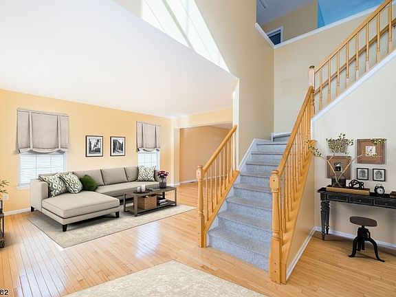 This East-facing, 4 bedroom, 3.5 bath colonial located in quiet, tree lined Brook Hollow has it all! The two story foyer opens to a living room, dining room space and open kitchen with skylights and adjoining family room. The generous master suite includes a walk in closet and private bath with jetted tub/shower. The spacious carpeted basement has a rec room, full bath and storage. A large deck overlooks a private fenced in yard and above ground pool. Plus, commuter convenience to Rt 80 and train. Well-maintained by original owners. Fireplace sold as-is.