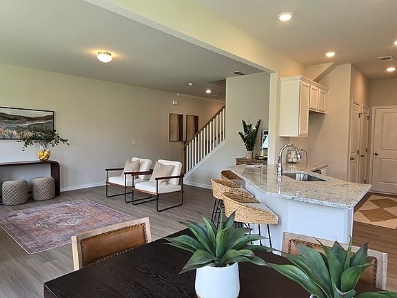 The Emory floor plan is an open concept floor plan with spacious kitchen and great room. This two story home built in 2024 has 3 bedrooms & 2.5 baths. This corner townhome features granite counter tops in kitchen and LVP floors throughout the main level. The second level features a HUGE owners suite with a spacious master bath, tile shower and oversized walk in closet. 2 additional bedrooms on the second floor with additional full bath. Home also features a nice upstairs common area/flexspace. This home also has a 2 car garage with plantation carriage garage doors. This lot has a big backyard