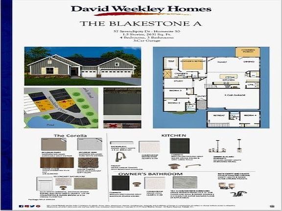 The Blakestone by David Weekley Homes is the idea floor plan for those who want the ease of one level living in this Fuquay-Varina, NC, community. A deluxe walk-in closet and pamper-ready bathroom make your Owner’s Retreat a private vacation at the end of each day. Both junior bedrooms are situated on the main level and the upper guest room sits adjacent a full bathroom. A study and tucked-away retreat adds great places for your ideal specialty areas. The streamlined kitchen is designed to provide an easy culinary layout for the resident chef while granting a delightful view of the sunny family room and dining area. Selected options for this home include a trey ceiling in the owners retreat and an gorgeous color palette. The kitchen features rich grey cabinetry, bright white quartz counters, and classic white subway tile backsplash. The owner’s Super Shower is laid in a marble patterned tile and grey cabinets and white quartz top on your dual vanities.