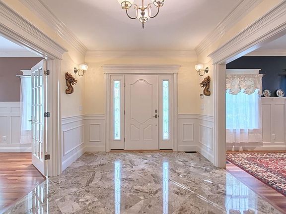 Impressive Custom Colonial with views of Coon Tree Pond. 5600 sqft 4 bedroom,14 room Colonial "Steve Foley of Design Build" exudes exemplary craftsmanship at every turn. Spectacular foyer w/marble flooring sets the tone for the beautifully detailed crown molding, wainscoting, turned staircase and wood flooring. Stunning chef's kitchen w/Thermodor high end stainless steel appliances, granite countertops, pantry and dining area designed for entertaining. Versatile floor plan which includes, formal living room w/fireplace, formal dining room, great room w/fireplace, family rm w/fireplace, office and solarium. Handicap accessible elevator offers service to all four floors. 2nd story floor w/master bedroom suite w/spectacular master bath. 3 additional bedrooms each w/their own full baths. 3rd floor w/office and large room ideal for your extended families. Four fireplaces, surround sound, state of the art heating system. built in generator and irrigation system. Expandable lot w/potential