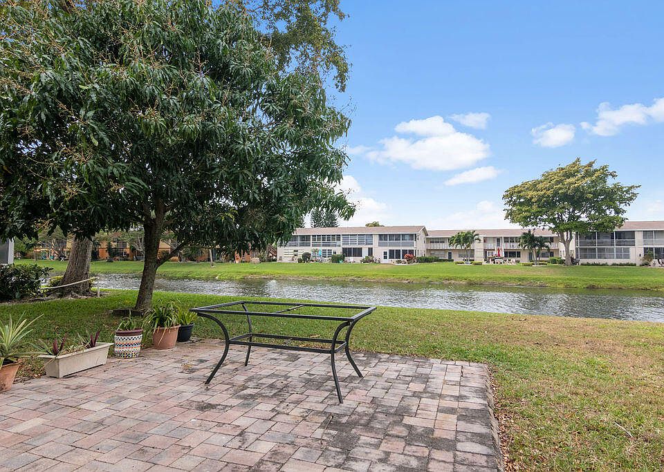 WOW!!! STUNNING.2 BED 1 1/2 BATH GROUND FLOOR CORNER WITH SERENE WATER VIEW .NEW NEVER USED STAINLESS STEEL APPLIANCES, QUARTZ COUNTER TOPS ALL NEW BATHROOMS. Roomy closets (one walk-in), screened-in patio, laundry room, assigned parking spot plus visitor parking available; local bus for errands/shopping both within & outside The Village; will sell furnished or unfurnished. COME AND ENJOY RESORT STYLE LIVING IN THIS GATED COMMUNITY FOR ADULTS 55+. Clubhouse with theater, shows, movies, craft and card rooms, billiards, aerobics, yoga, and dance classes. GREAT LOCATION: close to shops, restaurants, PBI airport and beaches.