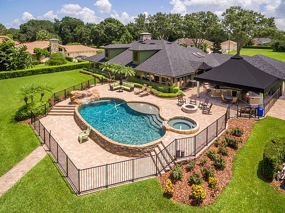The property you are inquiring about is located in Winter Haven, FL in the Skidmore area of Polk County. Nestled on the southeast shores of the Central Florida Chain of Lakes this home captures your heart! The pride of ownership and recent updates carry this waterfront into current effect life. We have four en suites, four full bathrooms and two guest baths, three gathering areas for living and exterior entertaining including recreational room, exterior family room and super sized 31''x27'' great room. Volume ceilings throughout, indoor/outdoor fireplaces, outdoor kitchen, a customized rock waterfall overlooking pool and lake, dock, abundance of porch space - and YES! Those sunsets, breathtaking boat rides for dinner or LEGOLAND fireworks! This will complete all the desires of your heart! Home warranty being offered.