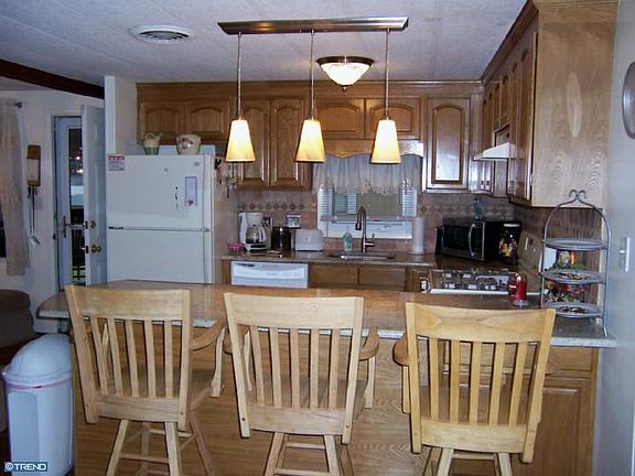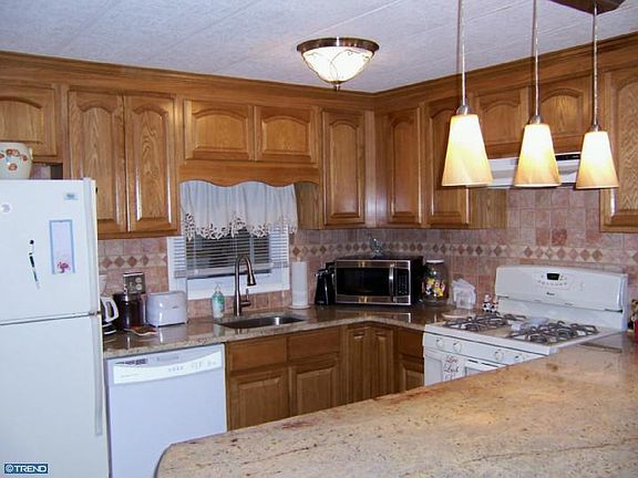 No Real Estate Taxes!Roomy Double Wide, Holiday Cottage Model measures 57x24 with a 20x10 Sitting/Sunroom addition off MBR w/sep. entrance.Appx 1500 Sq.Ft. of easy living!New HW Heater and Boiler,Brand new Kitchen featuring CT floors,Tumbled Marble Backsplash, solid wood cabinetry,Granite countertops, brkfast bar and Butlers pantry, new appliances, Pendant lights,Pergo flooring in DR,new doors thru-out.OpenFloorplan showcases MBR dressing Rm with custom CT Inlay Floors,and tumbled stone count...