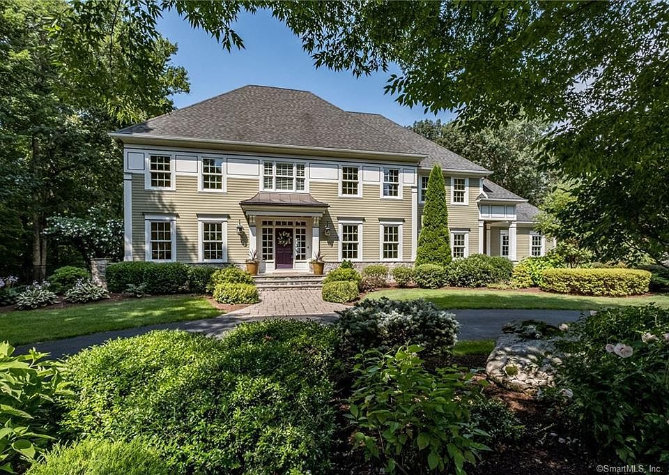 Exceptional custom Colonial idyllically set amid a backdrop of beautifully manicured level grounds & stunning pool & terrace abutting Town of Farmington land. Meticulously maintained, the exquisite craftsmanship & timeless design of this fine home create a sense of comfortable luxury that carries throughout the sun washed open interior. The well appointed chef's Kit w/warm wood cabinetry, top of the line GE Monogram appl. w/gas cooktop,ovens & built in fridge& lg walk-in pntry features a sunfilled brkfst rm brilliantly showcasing views of the incredible backyard setting. Entertain or relax in style around the gorgeous salt water pool & spa. Sunlight softly filters through the picturesque pergola on the expansive patio w/built in firepit & sitting walls overlooking the sprawling level fenced private yard. A comfortable, bright Fam rm offers an abundance of windows, stone frpl & exquisite beaded inset coffered ceiling. The LR, DR and study w/wet bar are each generous & open living spaces w/stylish finishes. Front & back stairs, generously sized mudrm w/lovely covered stone entrance, & 2 powder rooms enhance the main levels thoughtful design. Upstairs the serene primary is a true suite w/frpl, spa bath w/soaking tub, walk-in & inviting 13x12 sitting room w/2nd walk in! 3 addtl well sized ensuite bedrms,2 w/walk-ins& a convenient laundry rm complete the upstairs.Plenty of light, space, gas fplc & bath make the LL an enjoyable game rm space. A rare find in sought after Somersby.