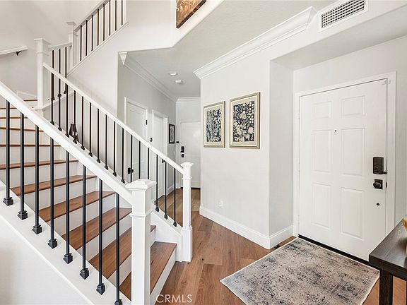 Model perfect Coto de Caza Andalusia Townhome with prime cul de sac location. Highly upgraded three bedrooms two and one half baths with approx. 1,562 sf. featuring hardwood flooring throughout, upgraded baseboards, plantation shutters and newer Amerimax low E dual pane windows. Kitchen has quartz counters, glass tile backsplash, custom cabinets including four doors with glass inserts and stainless steel appliances. Great room has two story high ceilings with lots of windows, surround sound in wall speakers, fireplace and custom mantel. Main floor bathroom completely remodeled. Master bedroom features recessed lighting, crown molding, ceiling fan, custom pocket door to closet, built in closet organizer and sliding door leading to view deck. Sliding barn door leads to master bath featuring separate tub and shower stall, heated bidet style Toto washlet toilet, dual vanity with granite counter and tile flooring. Secondary bedrooms include ceiling fans, shutters and spacious closets. Main floor inside laundry room. Large private rear yard with vinyl and wrought iron fencing. Two-car garage has overhead storage, newer furnace and A/C with lifetime filters and newer water heater. Additional recent improvements: CAT 8 wiring, solid core interior doors with custom hardware, custom built in desk, bookshelf and linen cabinet, newer interior paint, upgraded stair hand rails and iron spindles and upgraded lighting. Coto de Caza offers an array of amenities, including a private membership golf course, tennis courts, equestrian trails, and a clubhouse. This exclusive community provides a serene and secure environment for residents, along with access to top-rated schools, shopping, dining, and recreational opportunities.