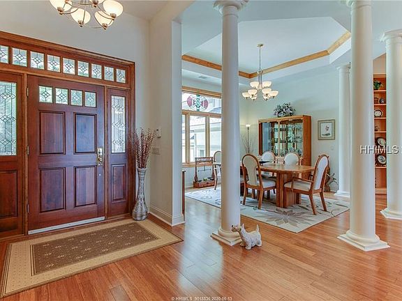 This home offers unparalleled beauty with far-reaching waterfront views and 135' of coastline. Relax in complete privacy from your rear deck or kayak from your backyard and enjoy the morning sunrises. The walls of windows bring the outside in, providing an abundance of natural light. This home is meticulously maintained with NEW Roof, NEW HVAC and NEW exterior trim paint in 2020. Featuring a 265 sq ft master closet and 81 sq ft pantry, you will be living the dream! Conveniently located between Bluffton and Beaufort with resort-like amenities.