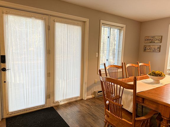 WINTER SEASONAL RENTAL - Nestled in a serene wooded area on Spruce Lane, this cozy 3-bedroom, 1.5-bath duplex offers the perfect retreat for those seeking both lake and mountain adventures. Fully furnished and pet-friendly (dogs allowed with additional deposit), this two-level chalet is just a short walk from Lake Rescue, Lake Pauline, and Red Bridge, and is only 3 miles from Okemo Mountain and Ludlow Village! On the main level, there's a full kitchen with dining for 8, a living room with TV and wood fireplace, a half bath and a laundry closet. Upstairs are three bedrooms: two with double beds and one with two twin bunk beds, plus a full bathroom. Perfect for those who want to unwind in comfort in a tranquil setting while staying close to all the action! Offered at $3,000 per month plus security deposit, utility deposit for heating and electricity (appx $500-$600/mo.) and cleaning fee. Plowing, internet, trash removal and current supply of wood included. Pets negotiable with additional deposit. Owner would prefer a seasonal lease but might also be open to a long term lease.