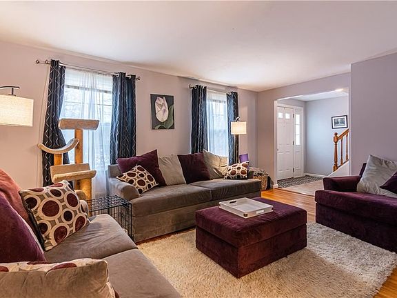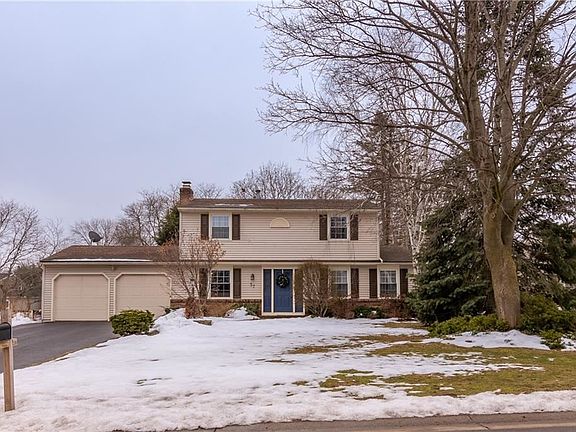 Here's your chance to own a well maintained 3 bed 2 bath colonial in FAIRPORT with HARDWOOD FLOORING and a FINISHED BASEMENT SPACE! This home features 3 bedrooms (the master has a WALK IN CLOSET) a family room with built in shelving and a wood burning fireplace, a living room, a formal dining room, a finished basement for entertaining (or a great TEEN SPACE) an attractive brick patio for those summertime grill parties! The GOODMAN FURNACE is NEW in 2018, the CENTRAL A/C is NEW in 2018, the commercial grade WATER HEATER is NEW in 2019, VINYL SIDING and UPDATED VINYL WINDOWS! All this AND FAIRPORT ELECTRIC! There's plenty of space in the ATTACHED TWO CAR GARAGE and the SUPER DRY basement has a GRAVITY DRAIN- no sump to worry about! This property is LIGHT, BRIGHT and MOVE IN READY!